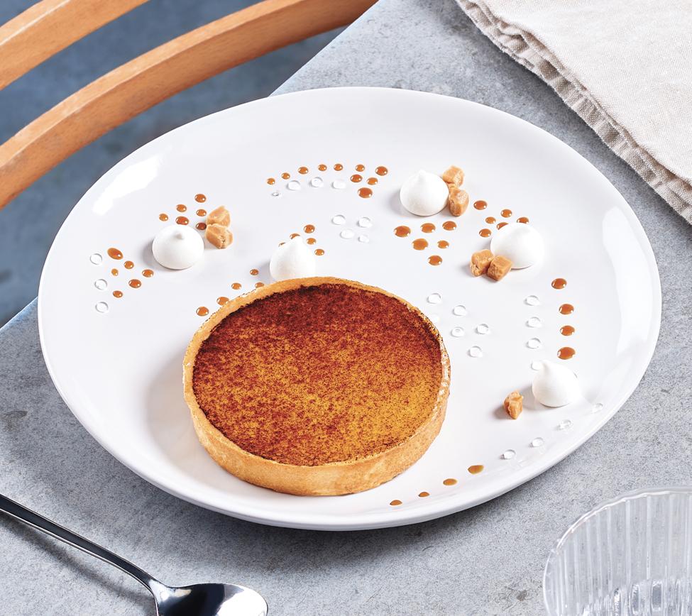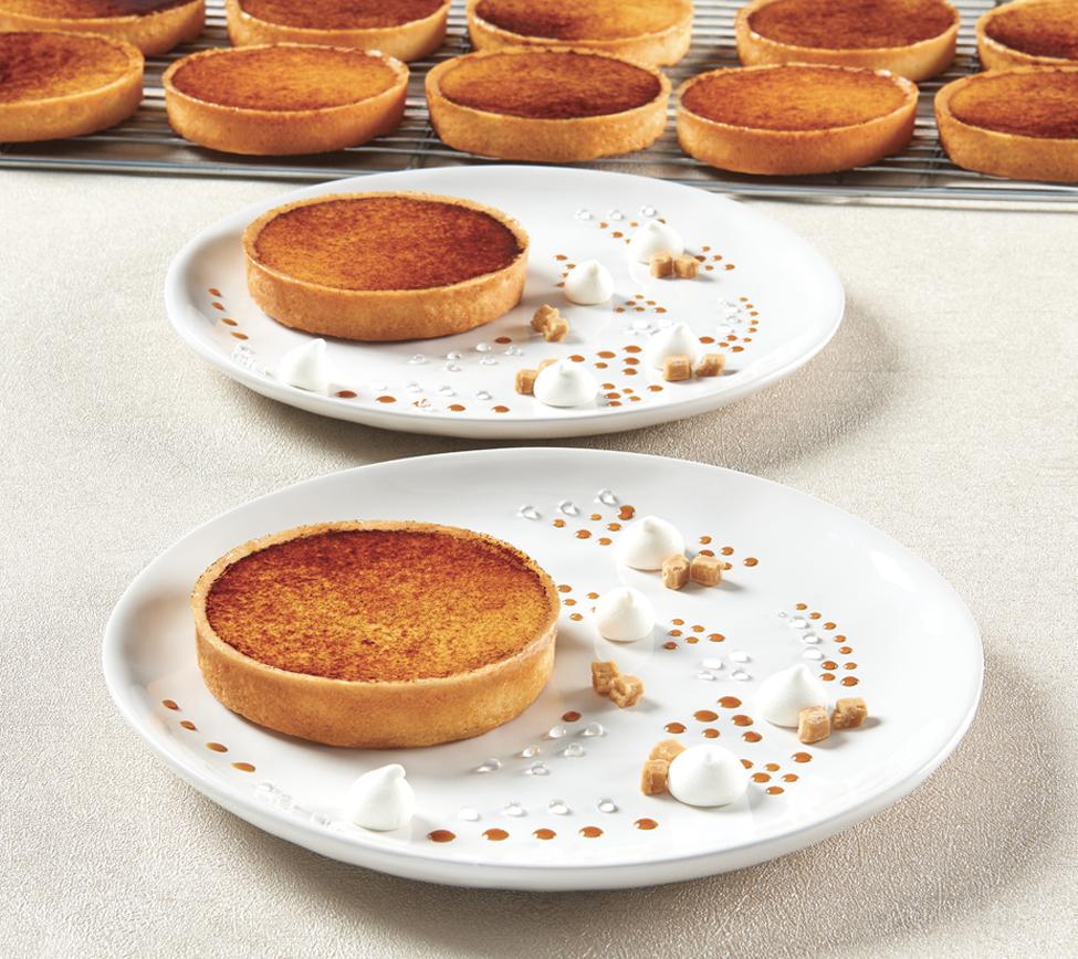Pâte sucrée pur beurre, crème saveur « crème brûlée » aux œufs.