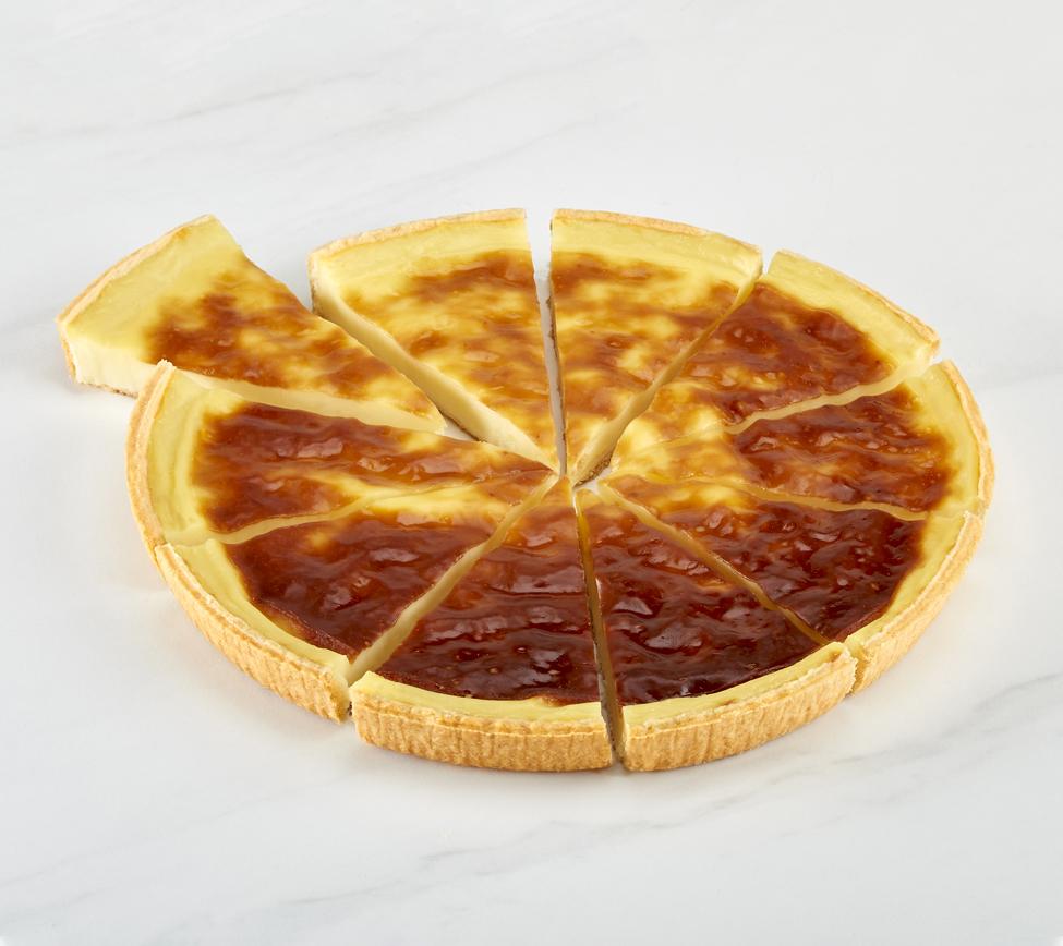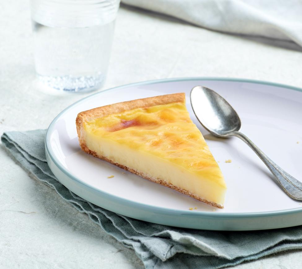 Pâte brisée (huile de palme RSPO niveau ségrégué), crème aux œufs parfumée à la vanille.