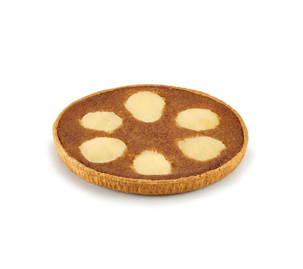Pâte sablée, crème frangipane aux œufs, demi-poires. (34% de poires)