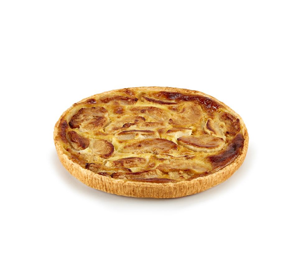 Pâte brisée, appareil aux œufs, pommes fraîches en quartiers. (40% de pommes)
